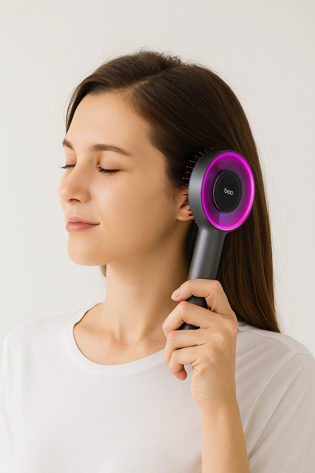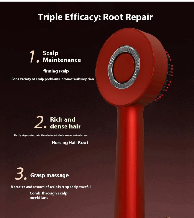 Designed for daily use, it combines advanced light therapy with targeted massage to boost blood flow, relieve tension, and enhance the absorption of your favorite hair products. Whether you're looking to strengthen your roots, improve scalp comfort, or support healthy hair growth, this device delivers a refreshing, salon-quality experience